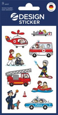 Matrica, papír,  3 ív, 76x120 mm, AVERY ZWECKFORM, "Z-Design No.54137", mentősök, rendőrök, tűzoltók