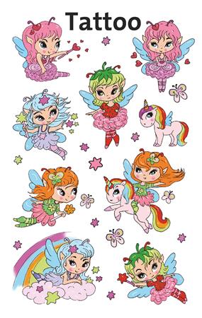 Matrica, tetoválás, 1 ív, 76x120 mm, AVERY ZWECKFORM, "Z-Design No.56768", tündérlányok és unikornisok