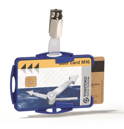Azonosítókártya-tartó, 2 kártyához, nyitott, csiptetővel, DURABLE, kék