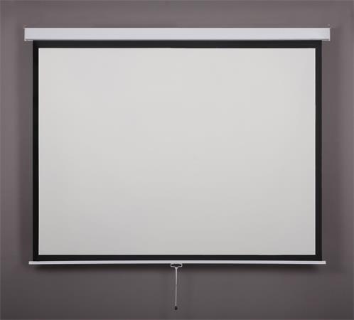 kézi mozgatású, rolós vetítővászon, lassított visszahúzású mechanikával