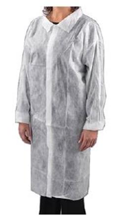 Látogató köpeny, egyszer használatos, tépőzáras, polipropilén, 20g, S méret, fehér